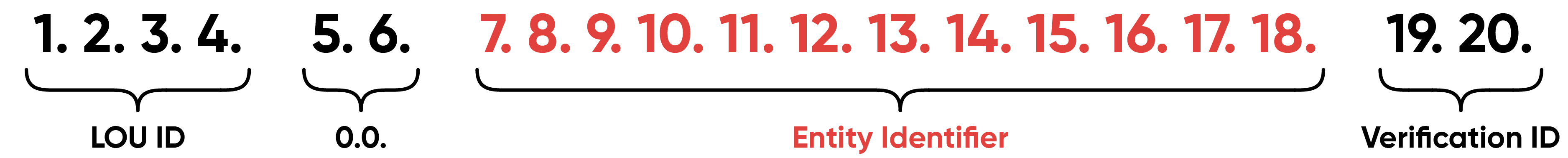 Le numéro LEI est standardisé avec le certificat ISO 17442 et se compose d’une combinaison de 20 chiffres et lettres.
